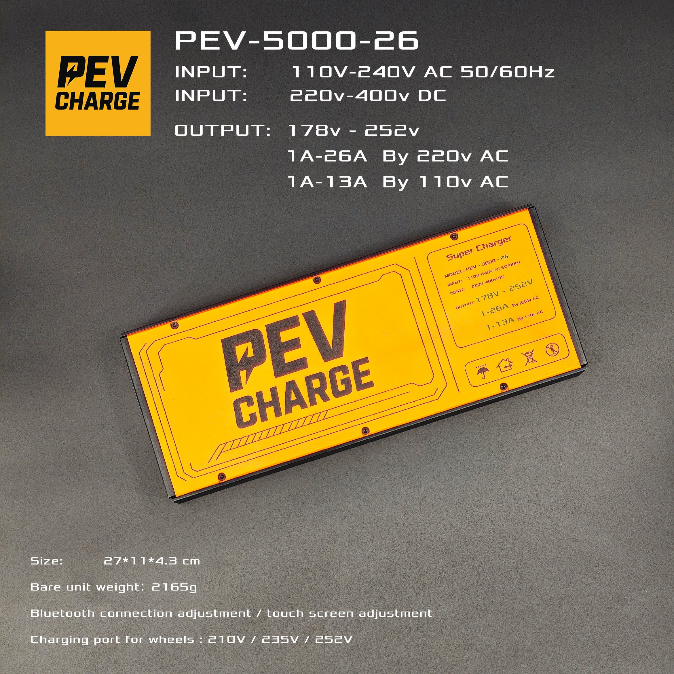 The PEVcharge 5000-26 fast charger is optional and will be shipped separately from the Chinese factory.